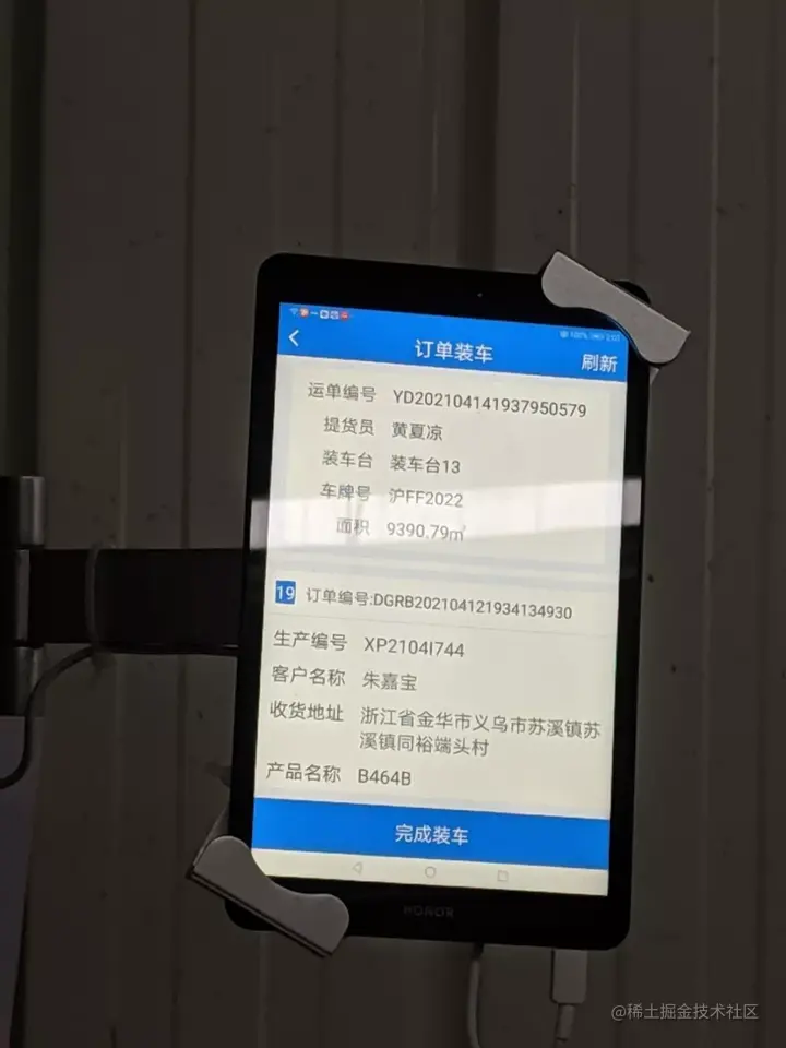 订单装车的系统显示。