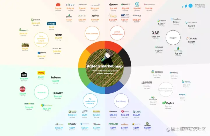 报告《 2020 Agrifood Tech Investment Review 》绘制的比较有代表性农业科技科技公司版图。