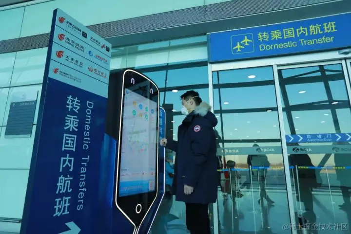 Aibee在北京首都机场的智慧屏,可以提供智慧导引、航班查询等服务