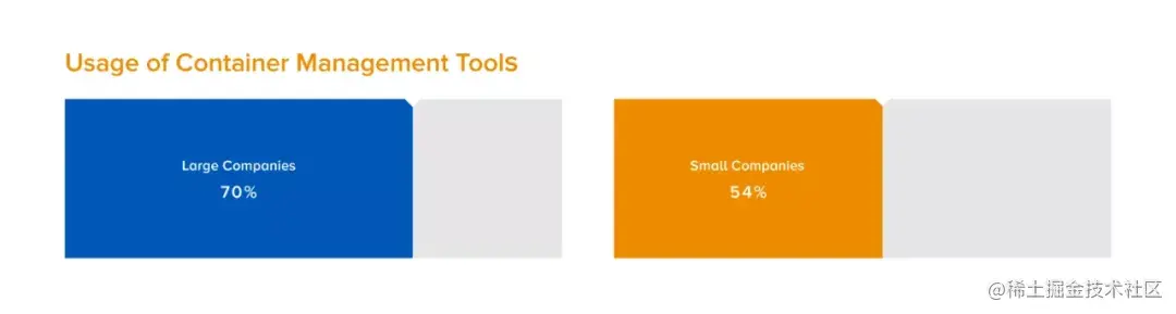 - 大公司更有可能使用容器(container)管理工具(70%使用至少一种)。
