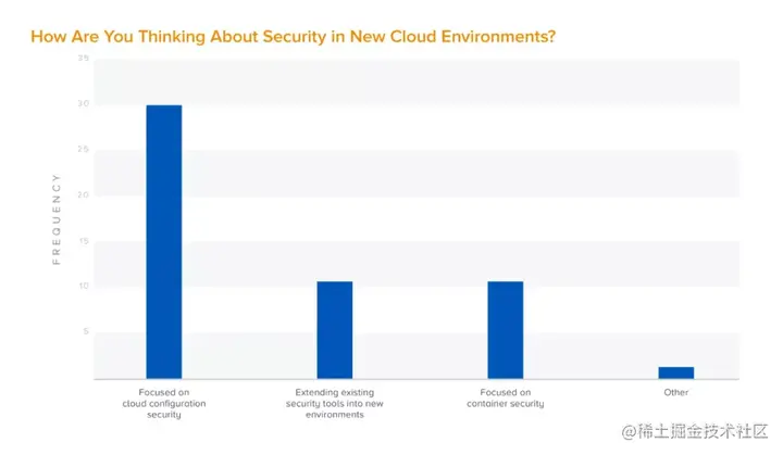 调查中,30%的受访者认为AWS是最安全的云提供商,其次是微软(Microsoft),该比例为25%。然而,最大的公司更有可能认为微软(46%)和谷歌云平台(29%,整体为13%)是最安全的。