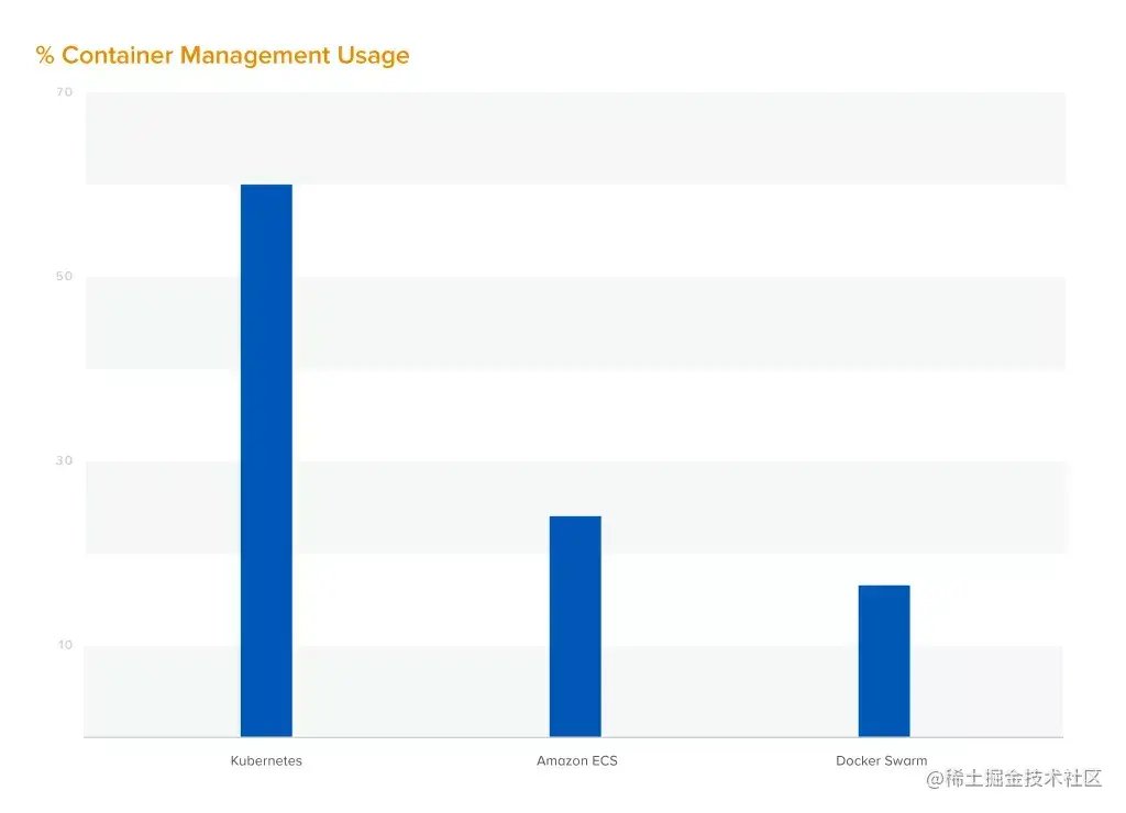 - Kubernetes主导着容器管理,50%的受访者使用它。