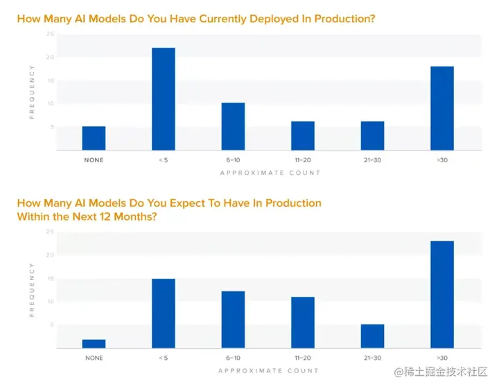 - 大多数公司目前部署的AI/ML模型不到5个,但预计在未来12个月将有超过30个模型投产。