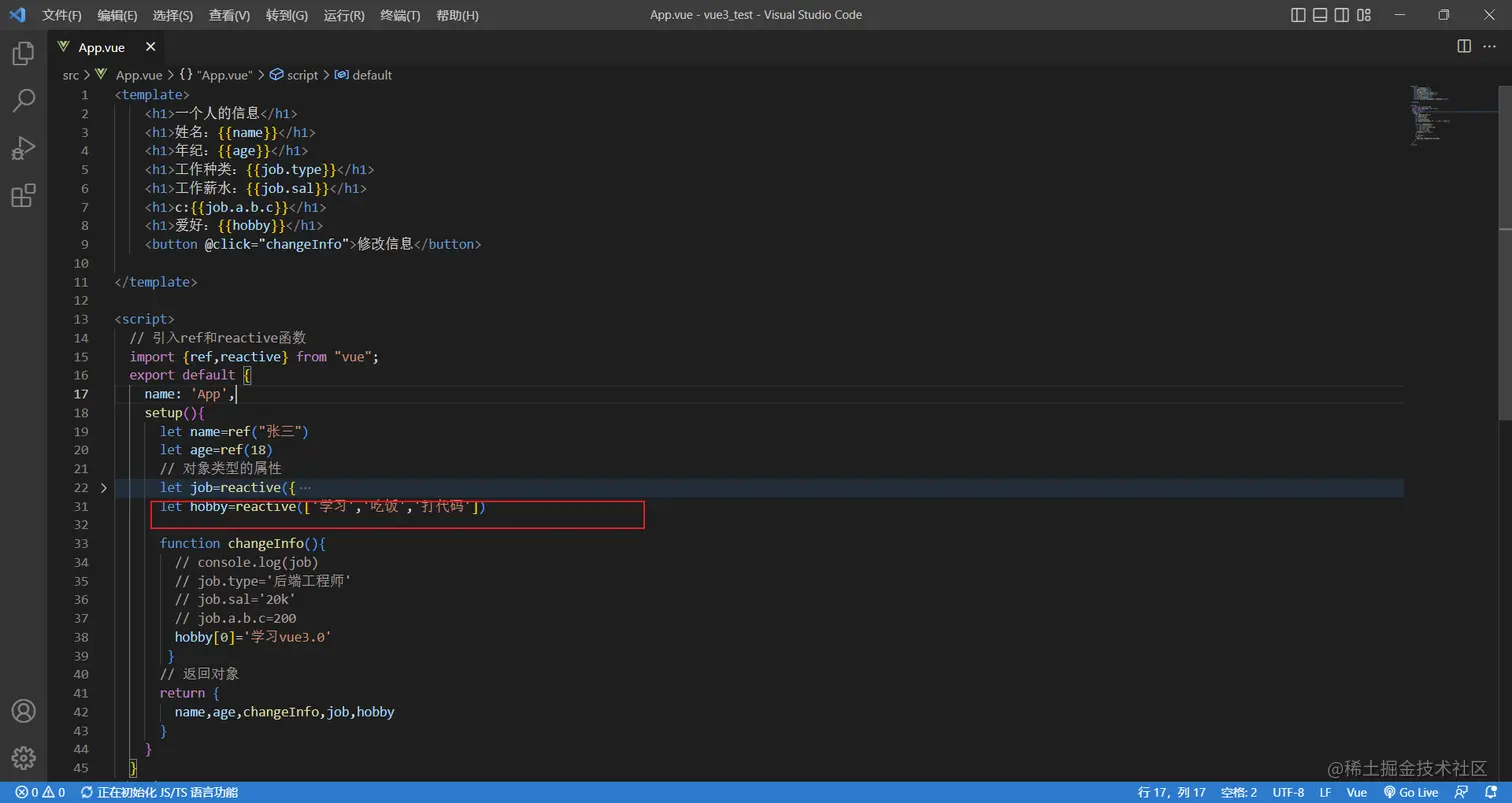 接下来我使用reactive定义一个普通数据
