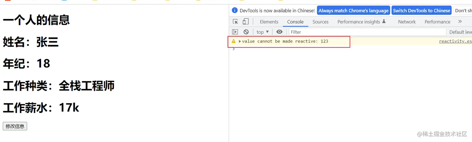 那么首先就可以验证只能使用reavtive定义基本类型数据这一说了