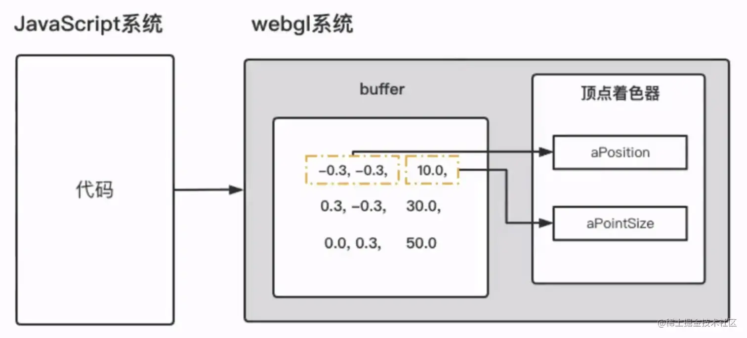 gl.vertexAttribPointer(aPointSize, 1, gl.FLOAT, false, BYTES * 3, BYTES * 2)