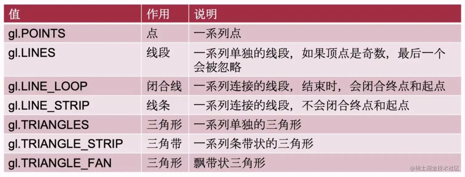 // 要绘制的图形是什么?从哪个开始?使用几个顶点