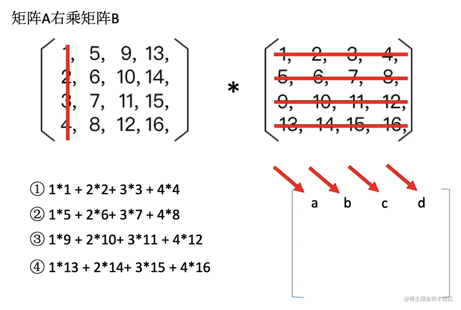result[i + 4] = A[i] * B[4] + A[i + 4] * B[5] + A[i + 8] * B[6] + A[i + 12] * B[7]