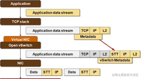 STT(Stateful Transport Tunneling)是一种数据中心网络虚拟化技术,与VXLAN和NVGRE不同,它不使用封装技术来创建多个虚拟网络。相反,STT通过在数据包中添加一个额外的头部来记录数据包在网络中的状态和信息。