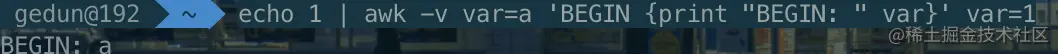 echo 1 | awk -v var=a 'BEGIN {print "BEGIN: " var}' var=1