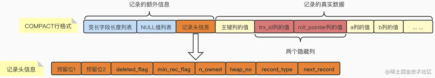 | PAGE_N_HEAP | 2bits | 第1位:本记录是否为紧凑型记录 |