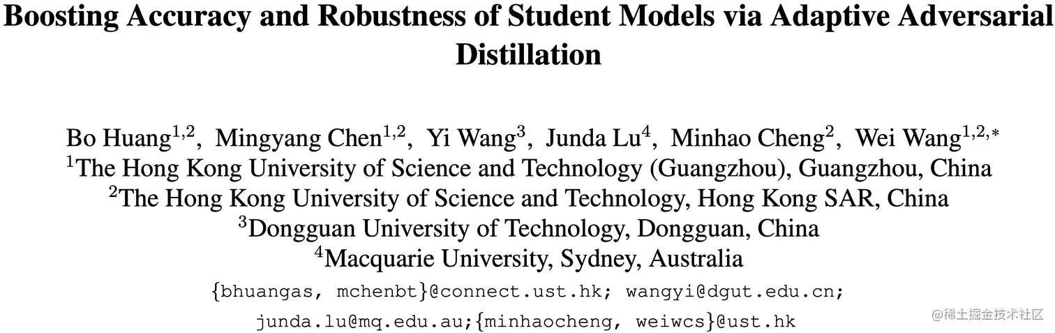 论文标题:Boosting Accuracy and Robustness of Student Models via Adaptive Adversarial Distillation
