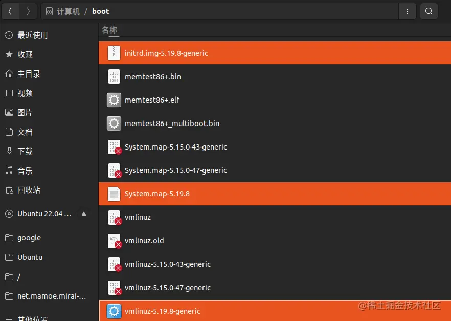 sudo mkinitramfs /lib/modules/5.19.8/ -o /boot/initrd.img-5.19.8-generic sudo cp /usr/src/linux-5.19.8/arch/x86/boot/bzImage /boot/vmlinuz-5.19.8-generic sudo cp /usr/src/linux-5.19.8/System.map /boot/System.map-5.19.8执行完