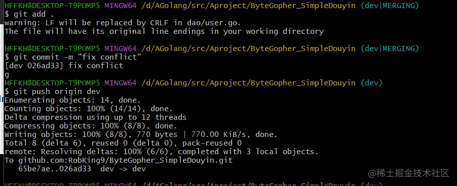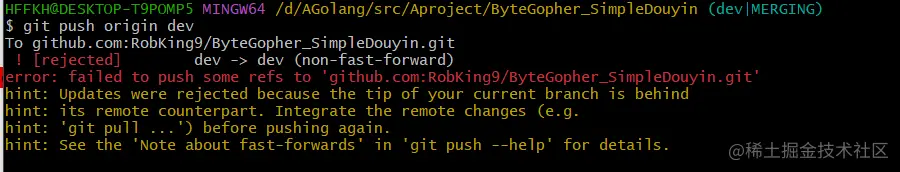 To github.com:RobKing9/ByteGopher_SimpleDouyin.git ! [rejected] dev -> dev (non-fast-forward)