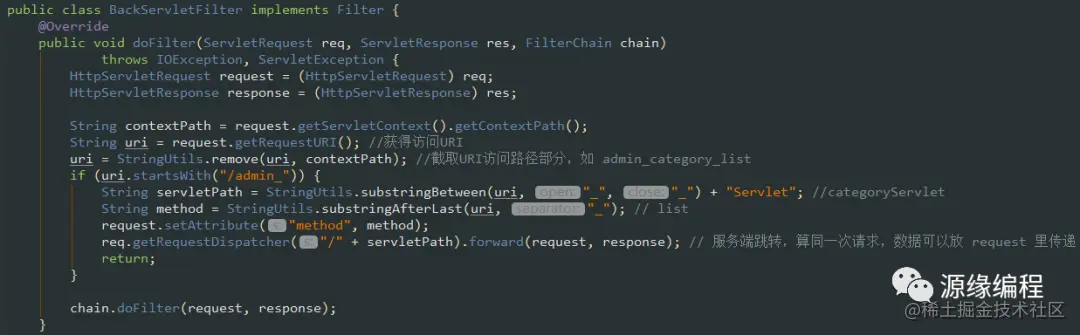 过滤器 BackServletFilter 进行拦截,判断访问的地址是否以/admin_开头