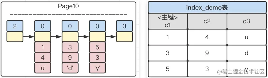 目录项节点:包含了c2列 +页号。