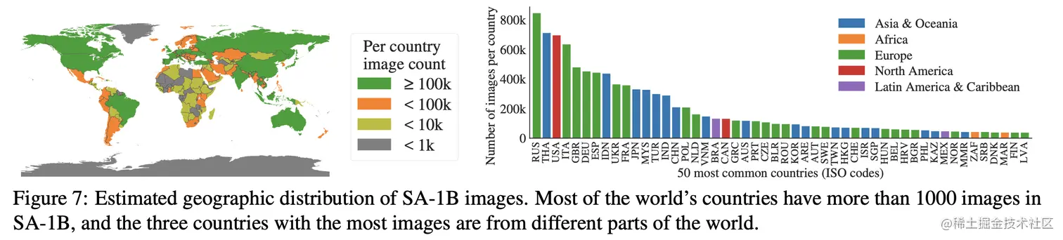 图像: 包含11M高分辨率(33004950)的图像,其他的一些开源数据集,例如COCO分辨率较低(480640) Mask: 包含1.1B的mask,99.1%都是模型生成的。作者实验了下,只使用模型生成的mask和即使用模型生成也使用人工标注的mask,模型的效果是相当的。因此发布的数据集里只包含模型生成的mask Mask 质量: 抽取了一部分mask数据做人工的精标,精标前后有94%的mask具有90%以上的IOU。而其他的一些开源数据集只有85-91%的IOU