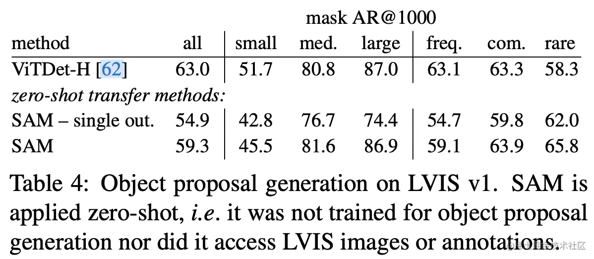 分割的结果取bbox,就能做目标检测了.整体指标低于ViTDet,但是在中等常见和不太常见的目标上效果优于ViTDet