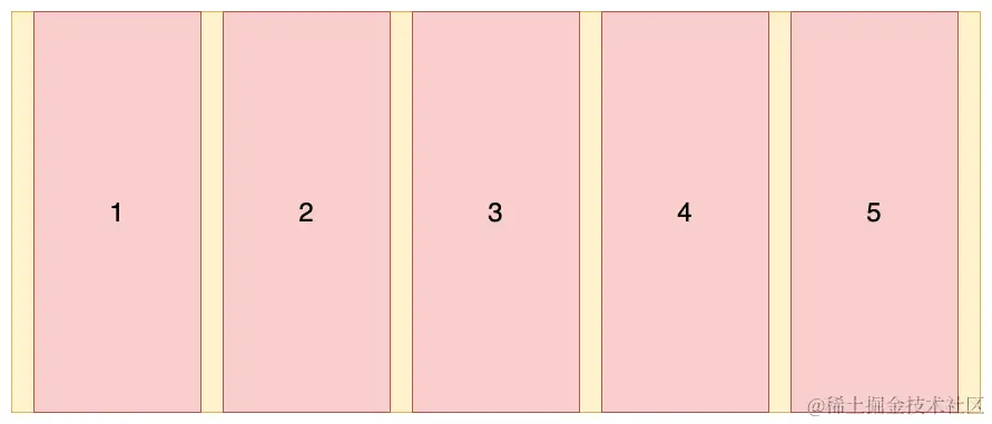 - 容器左侧与第一个项目、右侧与最后一个项目无额外间距(区别于用
