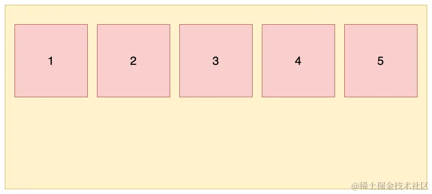 (1)stretch: 默认值,轴线占满整个交叉轴。这里我们先设置每个项目都是固定宽度,效果如下:
