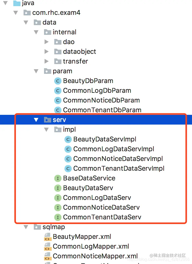 # 配置数据层服务相关文件存放的package
