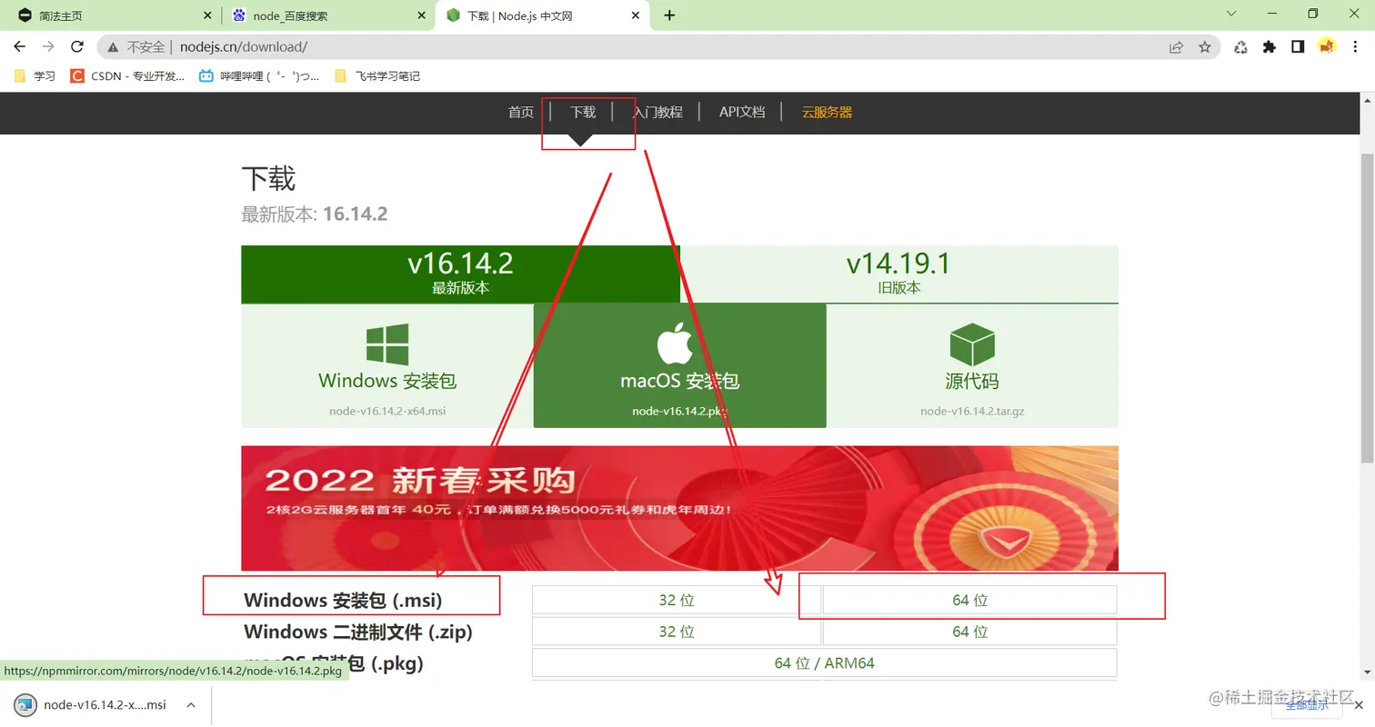 官方下载地址:nodejs.cn/download/ 下载LTS版本(长期稳定版本)