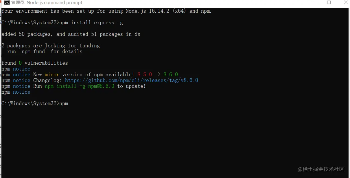 npm -v 查看npm的版本(新版的node安装自带安装npm)