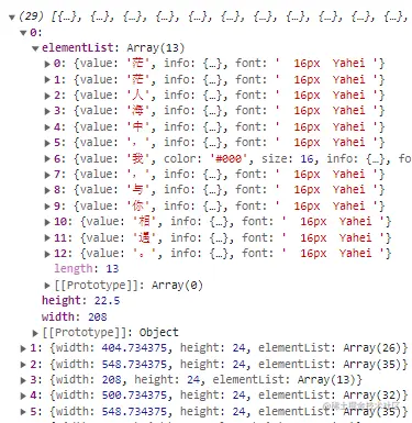 可以看到我们把文本的每个字符都作为一项,value属性保存字符,其他的文字样式通过各自的属性保存。