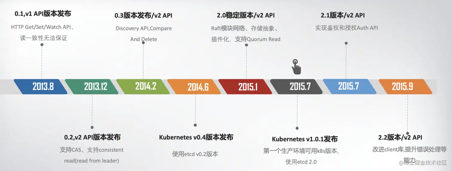 时间轴图,总结一下etcd v1/v2关键特性