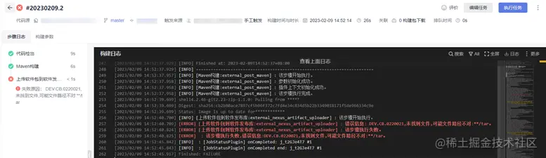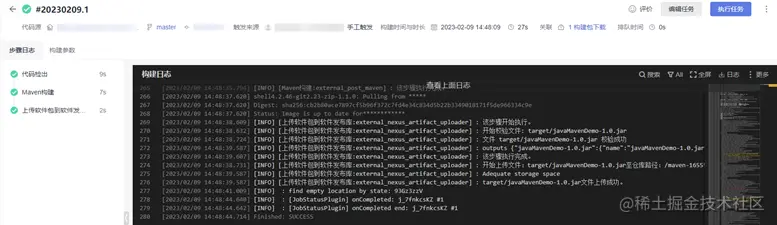 进入“构建历史”页面,单击右上角“执行任务”,启动构建任务。