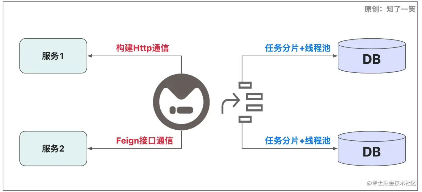 在任务调度服务中,难免要和其他服务进行通信交互,从而触发相关任务的执行,如果系统内部定时任务不多的话,可以采用feign接口的方式触发,如果任务非常多,可以考虑直接构建Http请求的方式,避免服务频繁的升级迭代;