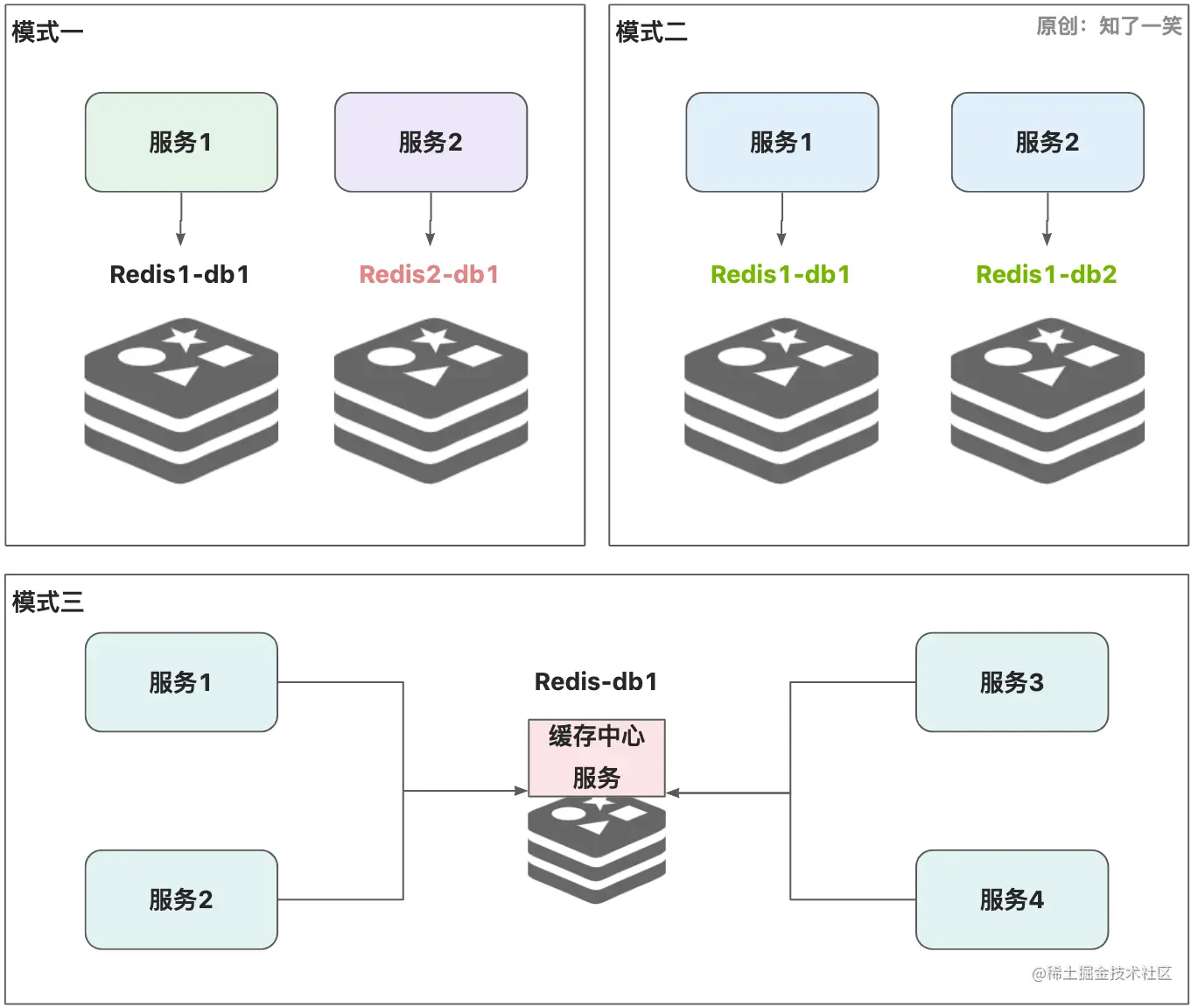 分布式服务:微服务常见的集成方式,不同的服务使用同一个Redis的不同DB编号,其他服务必须通过该服务的接口访问其缓存数据;
