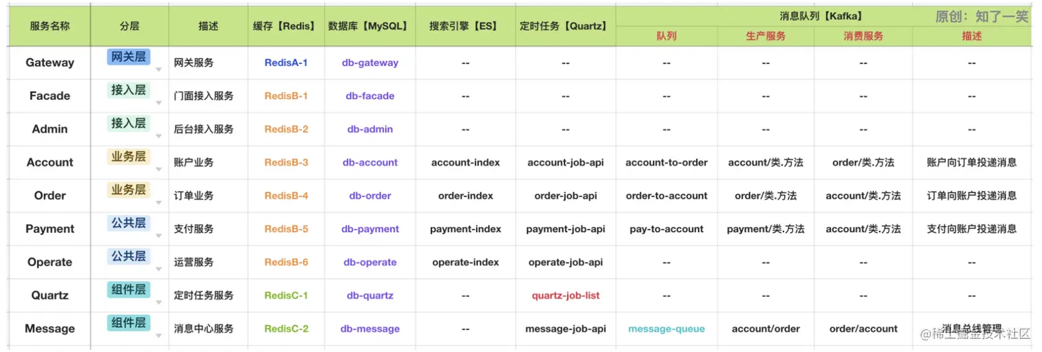 如上图,是团队内部维护的一份重要的系统清单:描述整个微服务体系中核心组件的依赖情况;【并不完整】