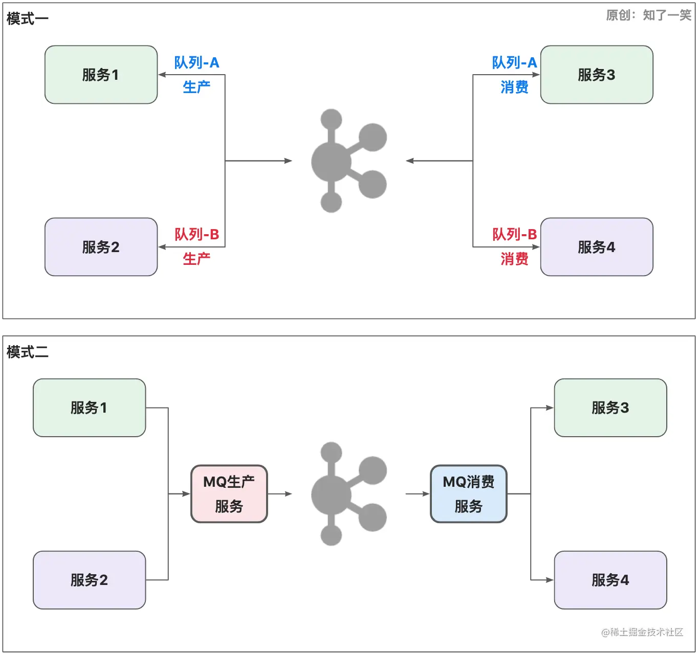 消息服务封装:单独封装消息生产和消费两个服务,来统一调度和管理消息通信,虽然提高了技术面的复杂度,但是极大降低了异步流程的管理难度;