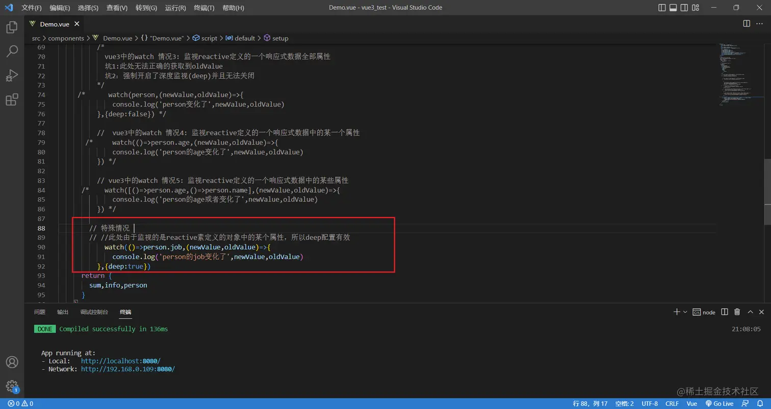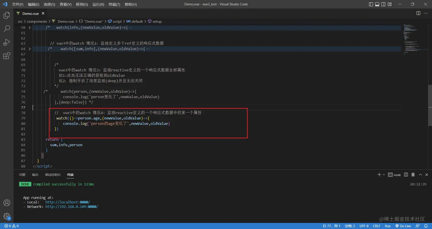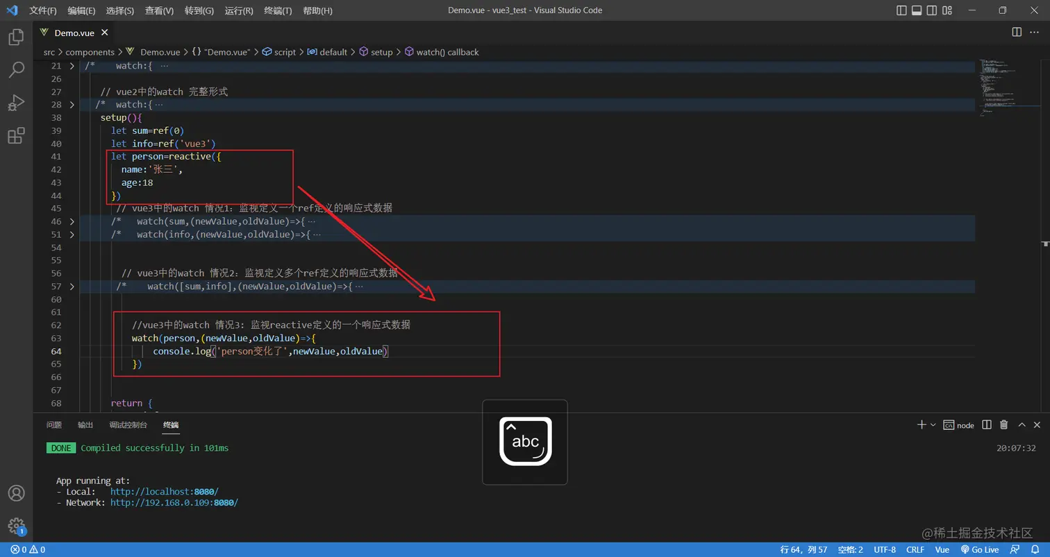 vue3的数据监视和vue2配置功能是一样的,都是对变化的数据进行监视