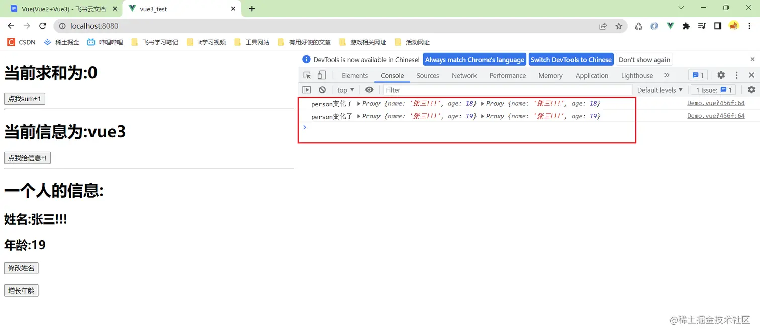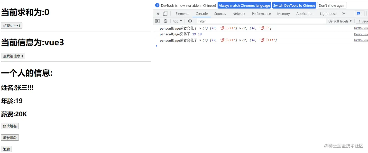 刚才监视的都是ref普通数据类型,如果使用reactive监视对象类型的数据,会有一些坑,下面演示一下