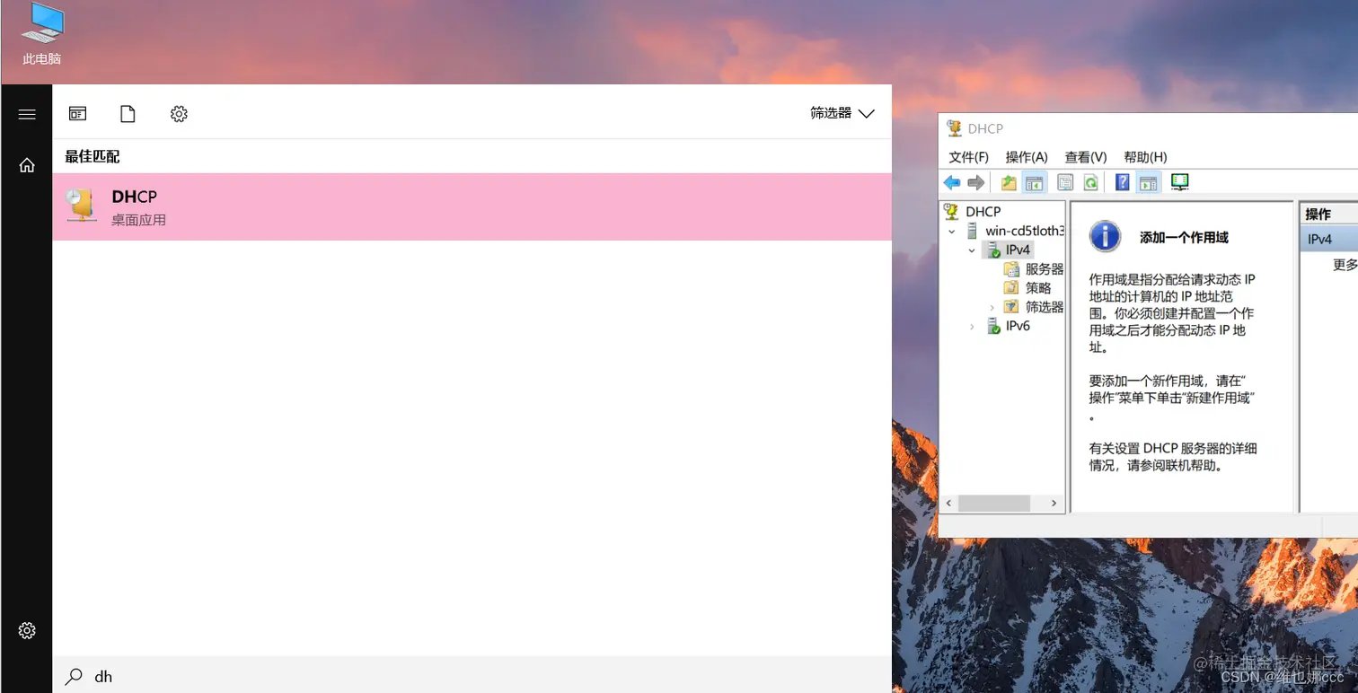 option subnet-mask:定义DHCP服务的子网掩码,如果没有该参数,则使用该IP地址端的主类掩码