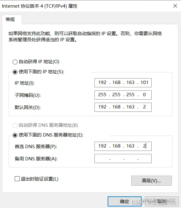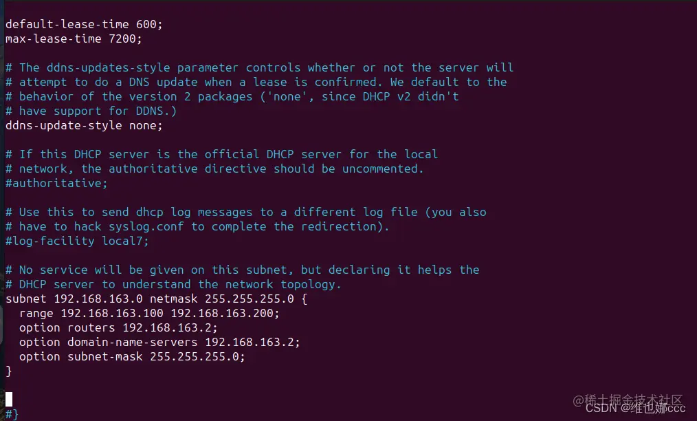 option domain-name-servers:与全局含义相同,DHCP服务的DNS服务器