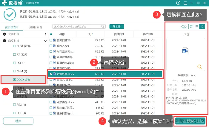 上述的3个方法是解决c盘无法格式化较简单的方法。在格式化c盘的过程中,可能会误删一些文件。如何找回c盘误删的重要文件?可以尝试使用数据蛙恢复专家。软件有比较好的数据扫描和恢复功能,同时保密性较好。清理时误删的文件有较大概率能被找回,恢复格式化后的重要文件可参考以下做法: