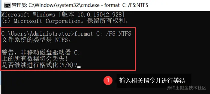- 为了防止误输指令而格式化错误,CMD将提示您确认格式化操作,请输入 【Y】 并按下回车键;