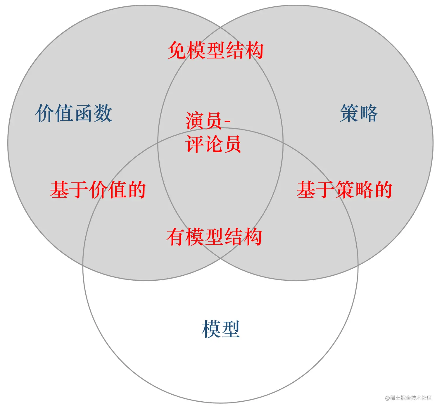 根据智能体学习的事物不同,我们可以把智能体进行归类。基于价值的智能体(value-based agent) 显式地学习价值函数,隐式地学习它的策略。策略是其从学到的价值函数里面推算出来的。基于策略的智能体(policy-based agent) 直接学习策略,我们给它一个状态,它就会输出对应动作的概率。基于策略的智能体并没有学习价值函数。把基于价值的智能体和基于策略的智能体结合起来就有了 演员-评论员智能体(actor-critic agent)。这一类智能体把策略和价值函数都学习了,然后通过两者的交互得到最佳的动作。