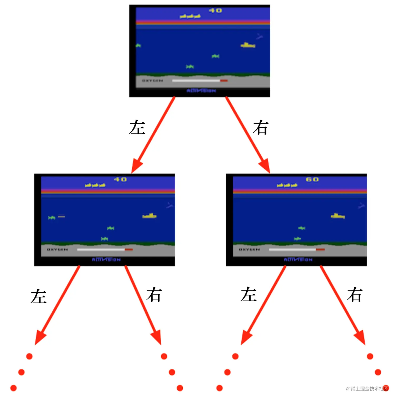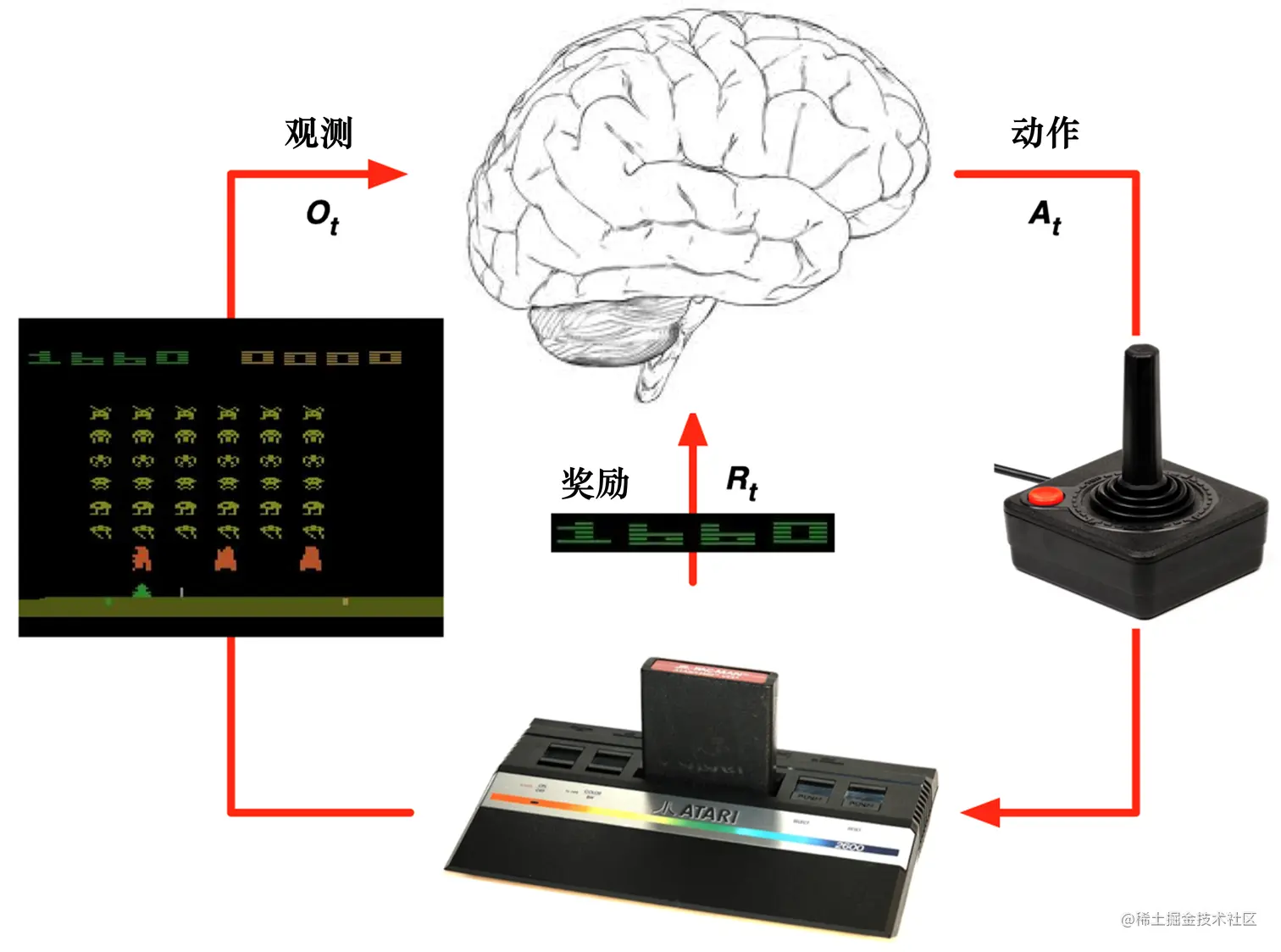 (3)在玩雅达利游戏的时候,奖励就是增加或减少的游戏的分数,奖励本身的稀疏程度决定了游戏的难度。