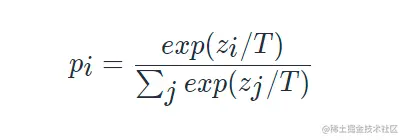 其中,T控制输出分布的平滑度,当T变大时,类别之间的差距变小;当T变小时,类别间的差距变大。