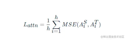 其中,h 代表注意力头数,Ai∈Rl×l 代表学生或教师的第i 个注意力头对应的注意力矩阵,l 代表输入文本的长度。论文中提到,使用注意力矩阵A 而不是softmax(A) 是因为实验结果显示这样可以得到更快的收敛速度和更好的性能表现。