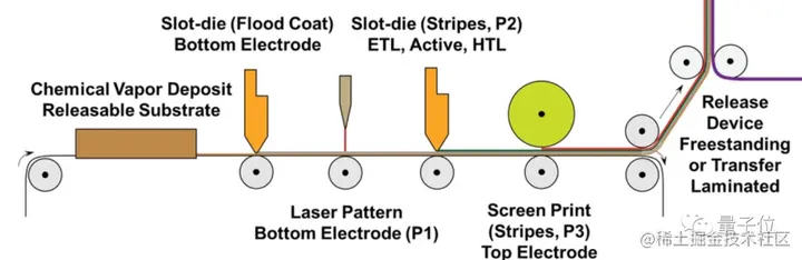 研究团队给出了这样一个(下图)制备可扩展太阳能电池的工艺流程:辊对辊集成。