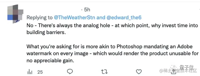 但有网友立即表示反对,为什么要设置障碍?这就跟使用PS然后加上Adobe水印,对产品没有任何益处。