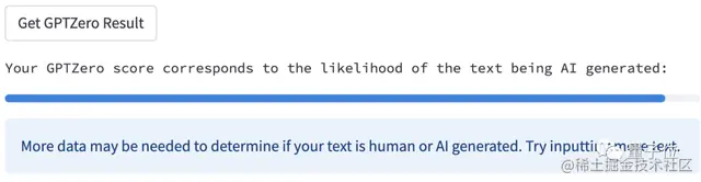 不过遗憾的是,GPTZero无法给出答案,还希望我们再多加一点文字试试。