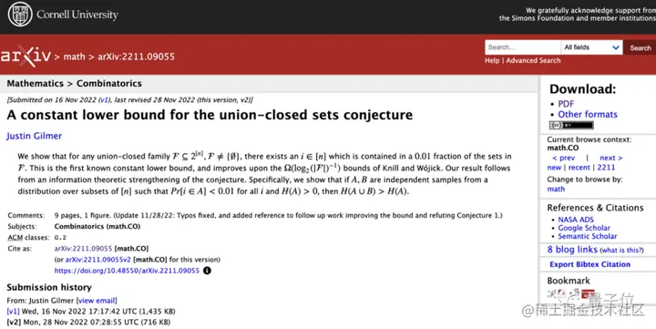 2022年11月16日,Gilmer将这一思路写成论文,发表在了arXiv上。
