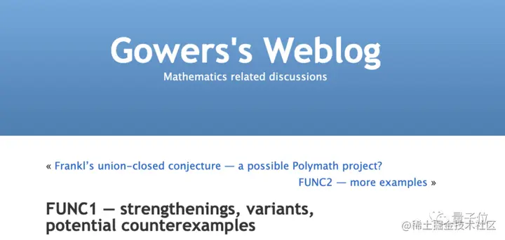 研究过程中,Gilmer还发现自己研究的问题并非无人关心,其实几年前,就有几位数学家在菲尔兹奖得主Tim Gowers博客里探讨过该问题。这让他有了更多信心。