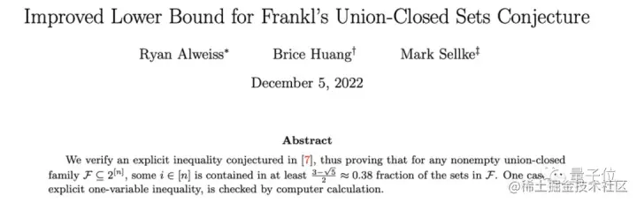 它于1979年被一个叫Péter Frankl的数学家提出,所以也一度被叫做Frankl猜想。